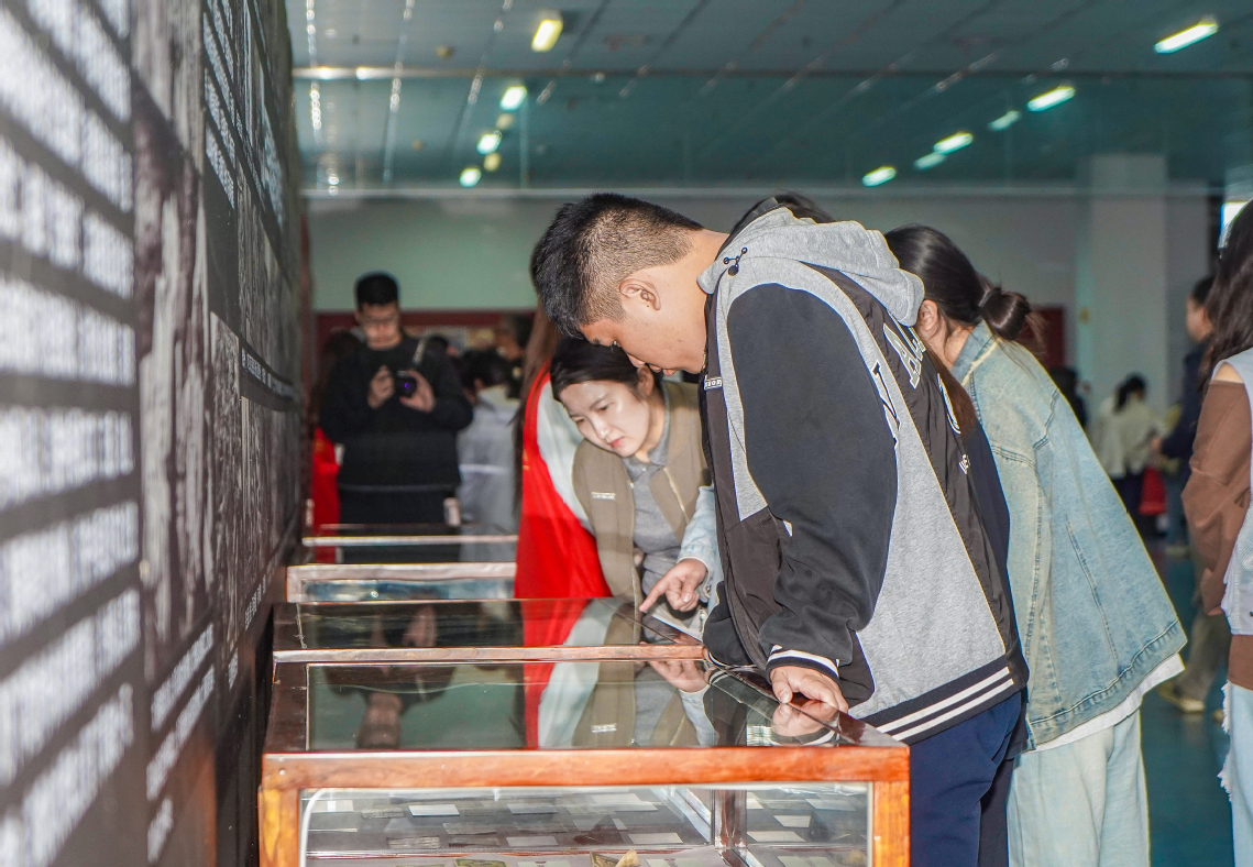 开幕式后,在问鼎在线校友、洛卫军品博物馆馆长王洛卫的讲解下,与会人员集体参观展览,详细了解抗战历史,感悟伟大抗战精神。据了解,此次展览拟持续1个月,面向广大师生和社会公众开放。