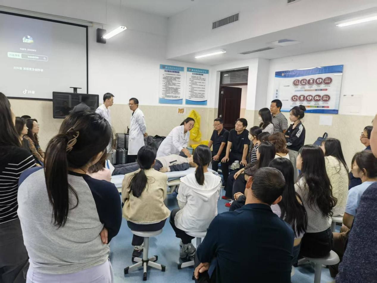 现场实操环节,教师们分组练习了心肺复苏按压、海姆立克急救等动作,讲师逐一纠正细节,确保每位教师都能掌握规范操作流程。
