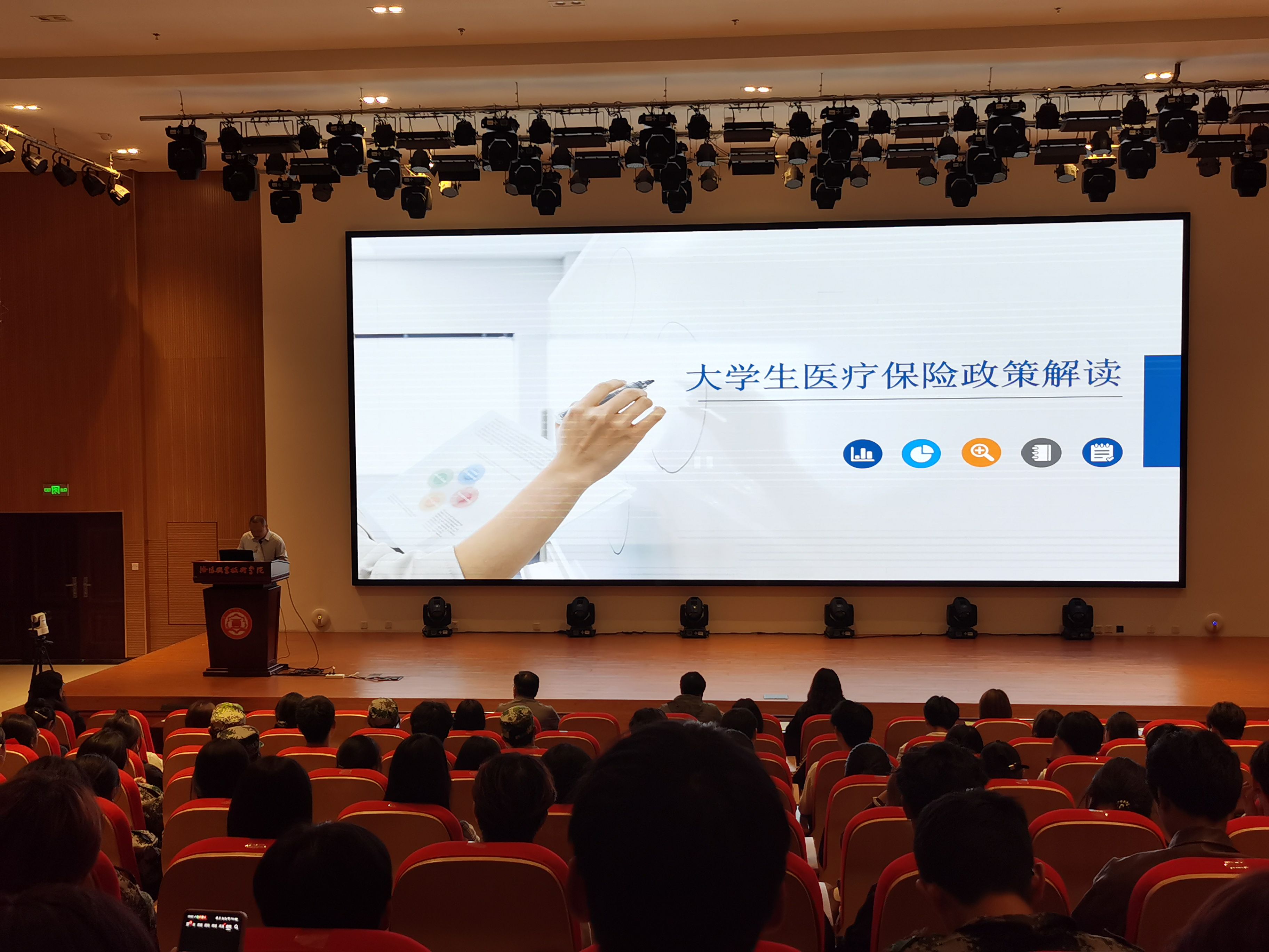 为切实做好大学生医保政策宣传与服务工作,9月24日,校医院在大学生活动中心一楼学术报告厅举行大学生医保政策专题宣讲活动。