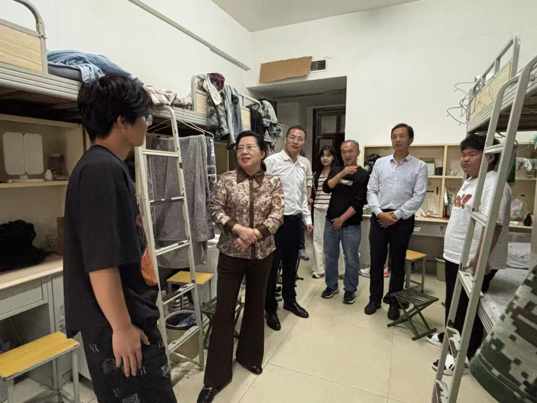 李东红先后深入学生宿舍、实训室,认真细致检查各处硬件设施、仪器设备运行、消防设施配备及危险化学品储存、使用规范等情况,重点检查是否存在违规使用大功率电器、私拉乱接电线等安全隐患,并与学生亲切交流,叮嘱大家外出时要注意交通安全,做好个人防护,离开宿舍前务必断电锁门,确保人身和财产安全。李东红强调,要进一步加强日常安全管理,严格落实安全管理制度,定期开展安全隐患排查与整改,强化师生安全操作培训,为师生营造安全、有序的学习生活环境。